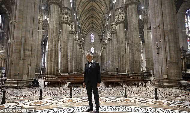 享誉全球的61岁盲人歌唱家安德烈·波切利(Andrea Bocelli)和管风琴演奏家埃曼努埃勒·卡洛·维安纳利(Emanuele Carlo Vianelli),被允许在复活节当日进入米兰大教堂,他们要在那里开一场没有现场观众的演唱会,向疫情期间的意大利传递“爱,治愈和希望” 。