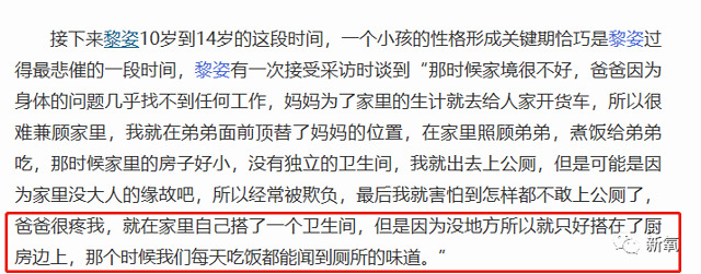 患有脑膜炎失聪的父亲在狭小的家里给黎姿搭了一个卫生间,位置就在厨房边上,每次吃饭都能闻到厕所的味道。
