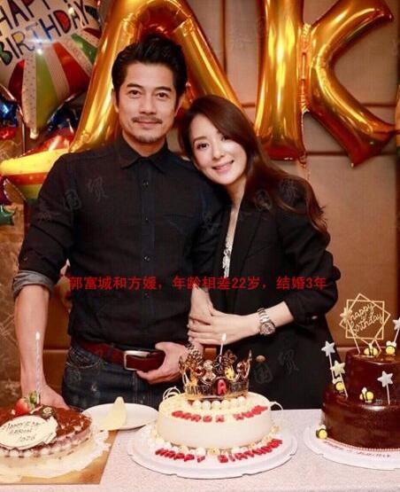 9、郭富城和方媛,年龄相差22岁,结婚3年,育有二女