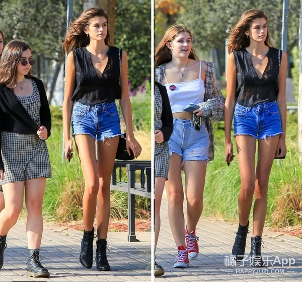 还是穿马丁靴不需要加增高鞋垫,已经是拉长三倍效果的模特星二代Kaia Gerber?