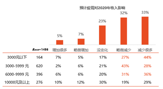 大部分受访者认为2020年疫情会给自己造成收入减少,尤其对月收入万元以下的人员影响较大。而收入在万元以下的观影人群占总观影人群的81%,这两组数据叠加,意味着接近八成的观众群体将面临生存压力增大,或将导致在恢复期内缩减娱乐性开支。