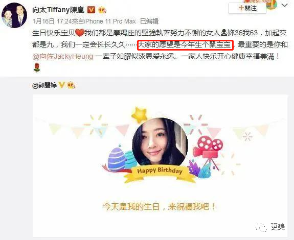 众所周知,今年郭碧婷过生日的时候,向太笑嘻嘻的给郭碧婷定了一个年度KPI:那就是生一个鼠年宝宝~