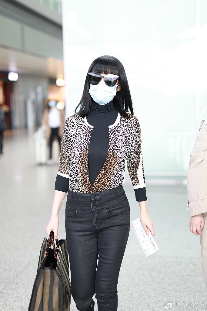 谭卓豹纹黑靴女王范十足超飒,齐刘海造型走独特暗黑风。