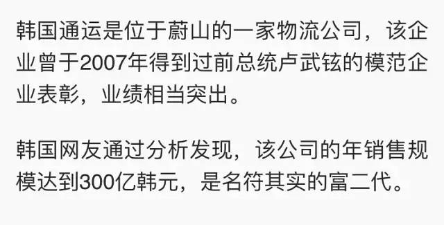 爸爸是韩国通运的董事长,年销售将近两千万,白富美本人了。