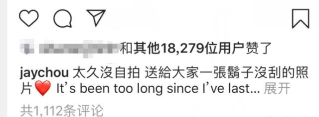 配文中,周杰伦称太久没自拍,送给大家一张胡子没刮的照片。天王号召力十足,瞬间吸引了一万多位网友点赞。
