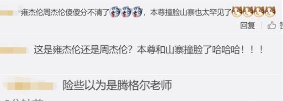照片当然man气十足很帅啦,但络腮胡堪称撞脸利器,不仅有网友把周杰伦认成了腾格尔,还有人本尊山寨傻傻分不清,以为这个大胡子是山寨周杰伦的网红“雍杰伦”,调侃本尊撞脸山寨太罕见。