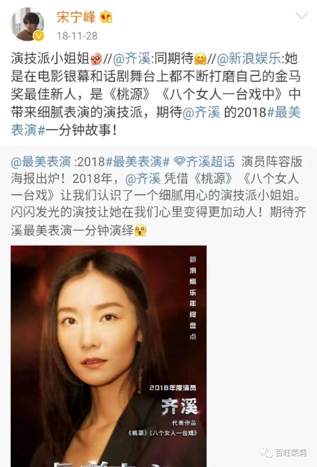 这时候感情看来没啥问题,但是齐溪进组后,他们的关系好像有了些许变化。这段时间宋宁峰除了1月份为齐溪的《地久天长》宣传过一次,就没有任何齐溪相关了。