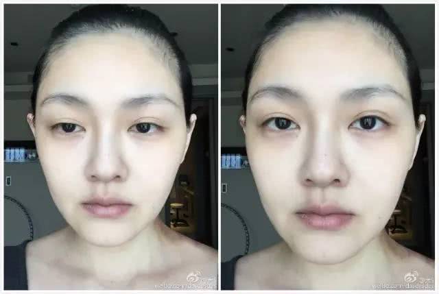 即使是接近素颜的淡妆照,皮肤也是水嫩嫩的,毫无瑕疵,护肤品广告里说的“剥壳鸡蛋”,就是这种脸。