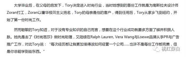 Tory Burch不是靠继承家族财富,而是靠个人事业赢得财富,所以被美国媒体誉为白手起家的成功女性创业者。(这一点很像美版周莹)