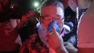 在片场拍戏期间,穿着厚重防化服的吴孟达,需要不断吸氧机来辅助呼吸。