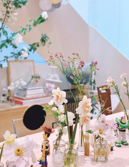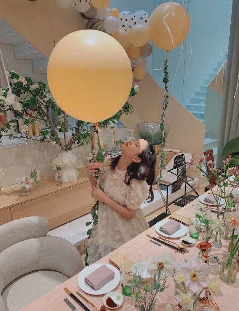 照片中,整个房间布满鲜花气球,温馨浪漫。