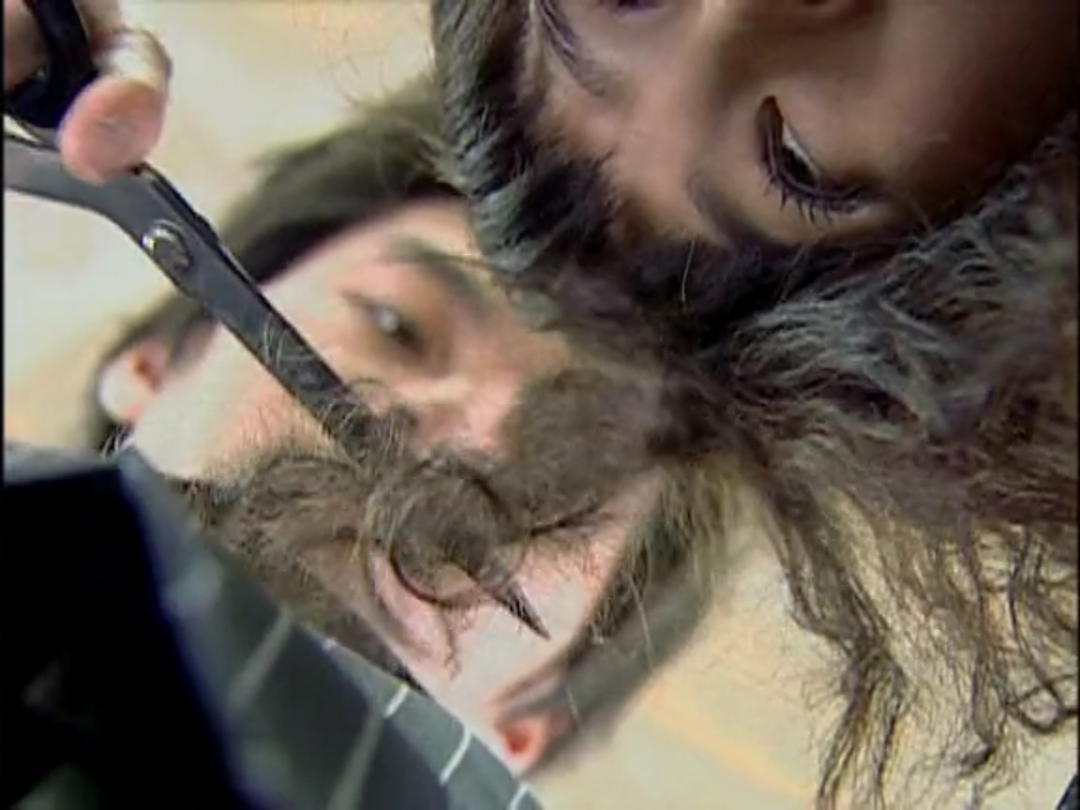 Excuse me?因为头发被扣子缠住耽误了您宝贵的时间,那您为什么不剪自己的西服???