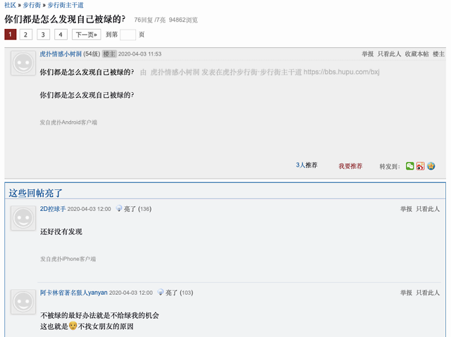 著名的“虎扑绿学”曾描写被绿之后的感受:“突变是以闪电和雷鸣的方式入侵的,像一颗子弹撞到胸口上炸开。”具有极强表演性的文字,无疑在呼唤解嘲过瘾的回复。