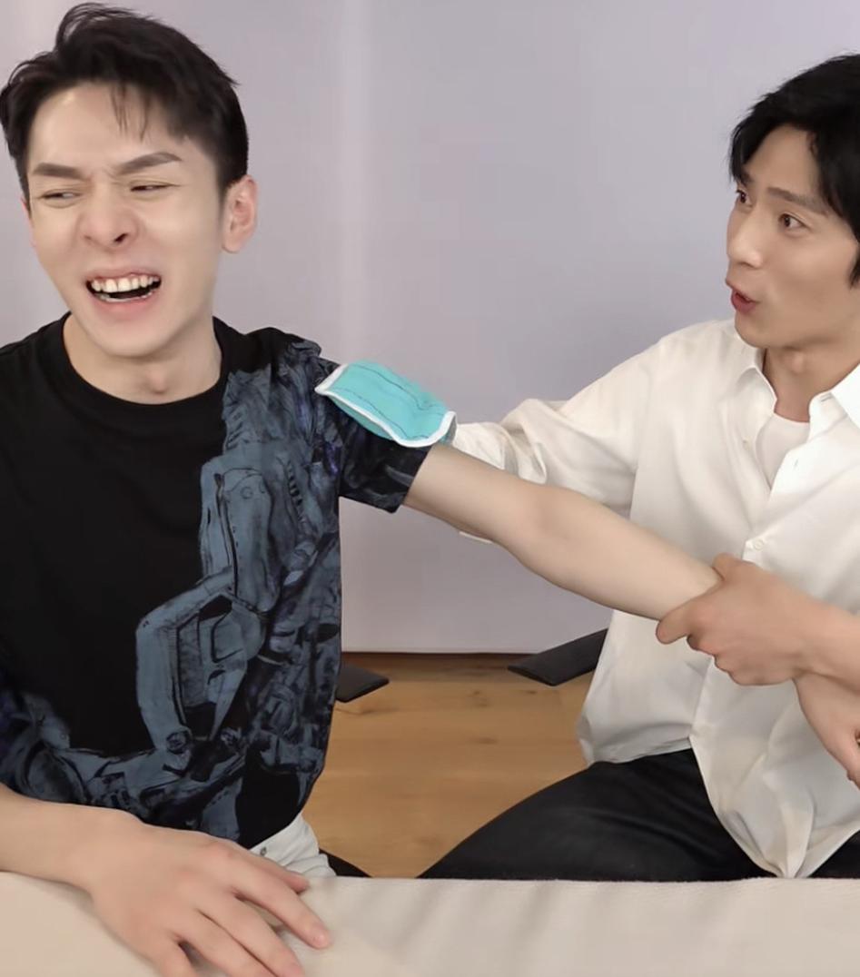 井柏然在直播中直接上手,给李佳琦搓澡。