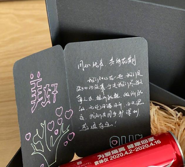 4月16日,从香港来到内地拍戏的袁咏仪结束14天隔离,酒店贴心地送上手写卡片和写有袁咏仪名字和隔离时间的饮料作为结束隔离的礼物。
