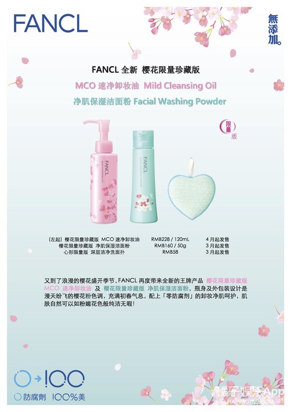 又到了浪漫的樱花盛开季节,FANCL再度带来全新的王牌产品 樱花限量珍藏版 MCO速净卸妆油 及 樱花限量珍藏版 净肌保湿洁面