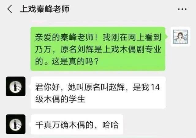 据了解,作为rapper的乃万(原名赵辉)只是她的其中一个身份,而另一个身份则是上戏木偶剧专业的毕业生。
