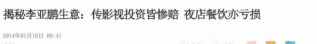李亚鹏淡出娱乐圈后,一直都醉心于做生意。他名下虽有多家企业,涉足行业颇多,从影视投资到房地产再到夜店餐饮均有涉猎,但貌似经营上都不是太好。