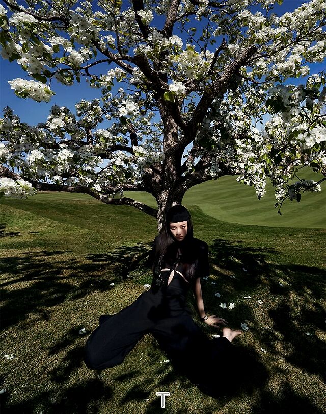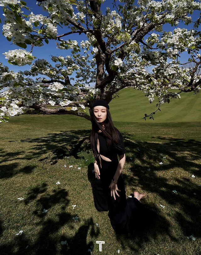 她为《风尚志》拍的这组室外大片,看得人好想去踏春,原来花都开好了。