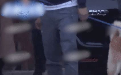 他和两个助理在创意园区内漫不经心地走着,期间被男助理牵着的狗不愿意动了,李亚鹏看着一人一狗在“拉扯”,丝毫没有想要上前帮忙,还双手环胸,有些在看热闹了。