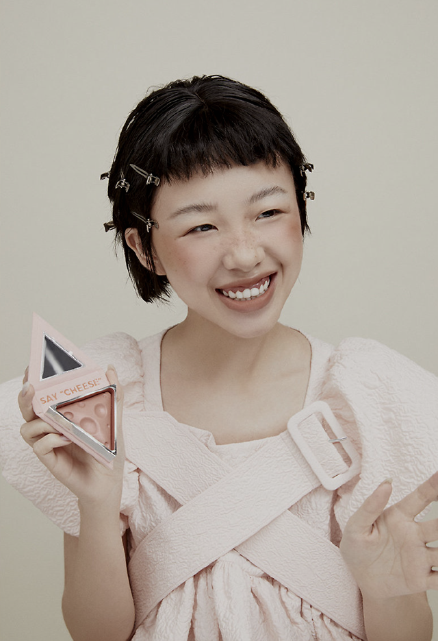 阿沁最近拍了一组彩妆大片,效果第一眼看起来有点难get,整个妆容的肤色是小麦色,腮红的颜色偏棕,涂的位置也有点“高原感”,看起来很原生