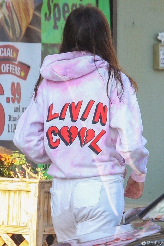 莱昂纳多戴墨镜,打扮休闲,女友则穿粉色卫衣现身。