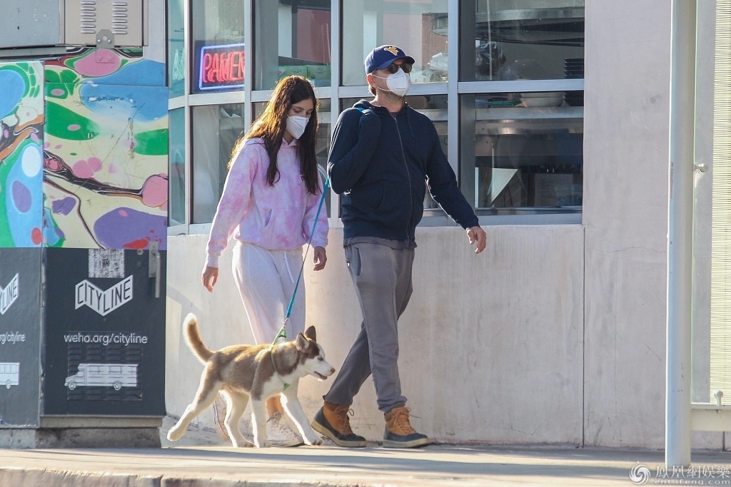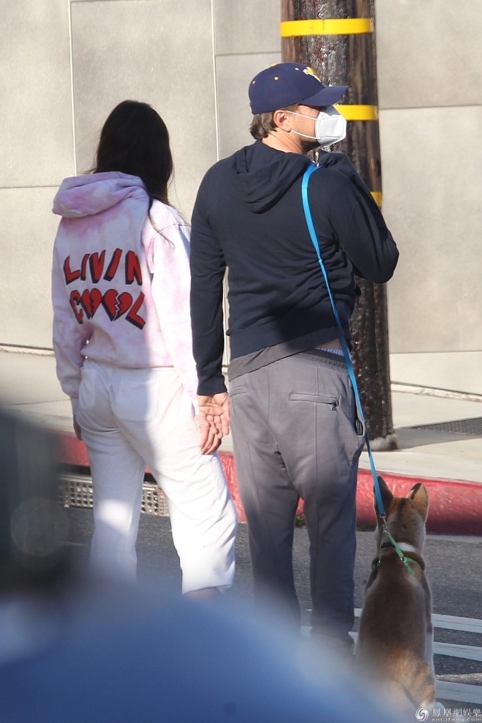 当地时间2020年4月15日,美国,莱昂纳多与女友现身街