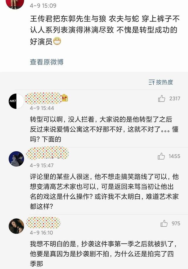 但是,《爱情公寓》早在第一季播出后就被扒抄袭了,而王传君整整演了四季,难道之前他都不上网的?