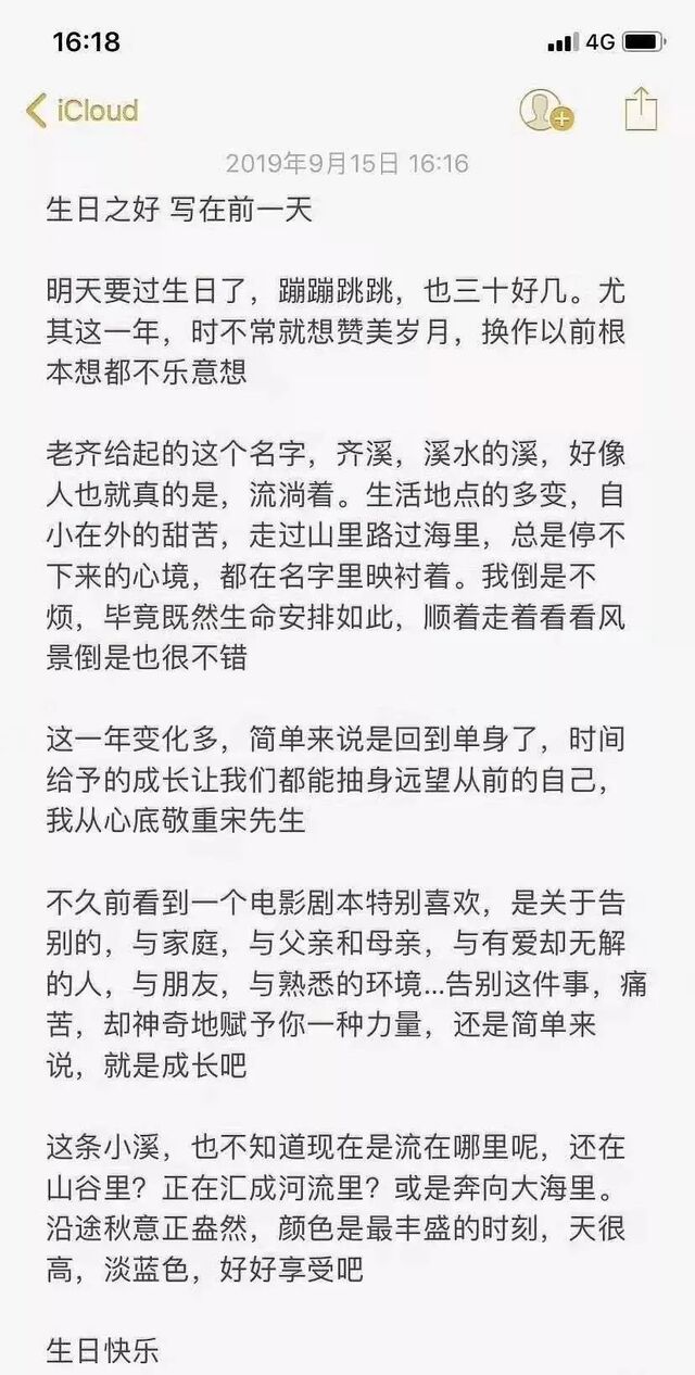齐溪称离婚是“给自己的礼物”,并且附上了一篇长文 ↓