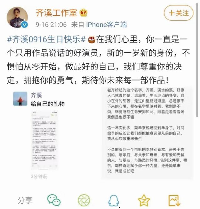 谁曾想,同年9月16日,齐溪突然在自己生日前一天官宣了离婚的消息。