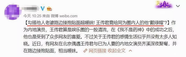 接着就传出“齐溪婚内出轨”、“王传君给同行戴绿帽” ↓