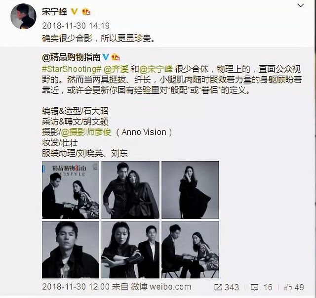 11月份,两口子还一起上杂志秀恩爱 ↓