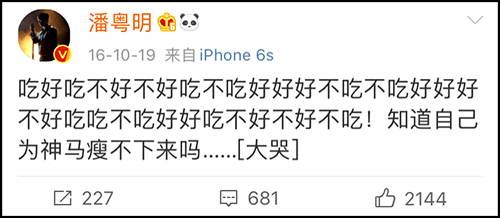 2016年,潘粤明绝望到开始写绕口令总结自己瘦不下来的原因。