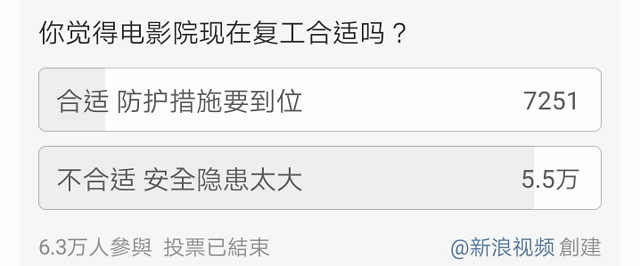 前段时间,微博上各种关于“影院复工你会不会去”的投票下面,主流的声音都是“不会去”“不安全”。