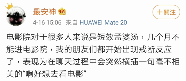 所以在没有了影院的这些天,那么多人才会反复把出门看电影作为自己最近的期待。