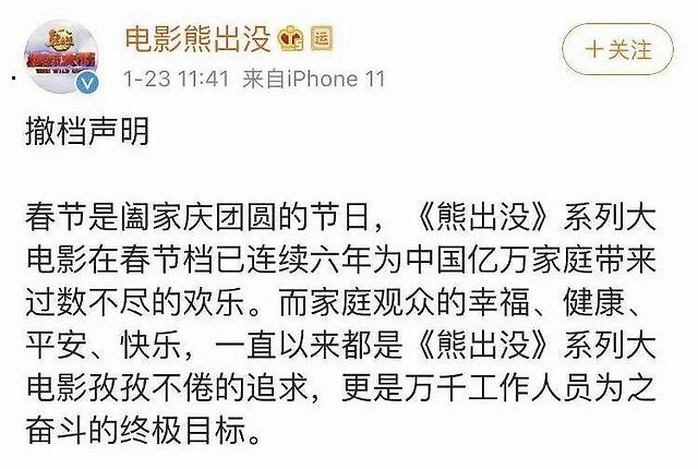 1月23日,随着疫情的进一步蔓延,电影《熊出没·狂野大陆》率先撤档。