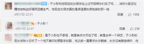 他与陈小纭参加《我家那小子》时,虽然很甜,但也经常吵架。有一次居然是因为陈小纭的歌单里有一位男明星的歌曲,让于小彤的脸色马上沉下来了。
