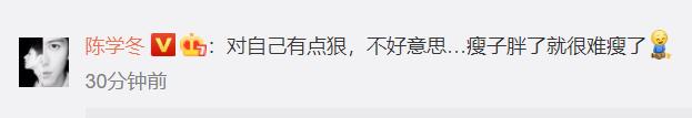 陈学冬还自己评论了自己的动态,表示对自己有点狠,这语气中透露着满满的骄傲。