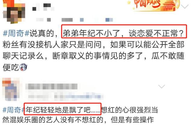 有些网友评论道,参演《小欢喜》后成名的周奇似乎有些"飘"了,但也有些网友认为,周奇还小,难免有些孩子气,况且他已经成年了,谈恋爱很正常。
