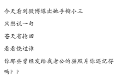 凭着张大奕在各个社交平台的流量,这一翻喊话,张大奕第三者插足天猫总裁家庭的消息瞬间传开。(但目前相关新闻都被屏蔽了,热搜更是没有,有知情人称是男方公关所为)