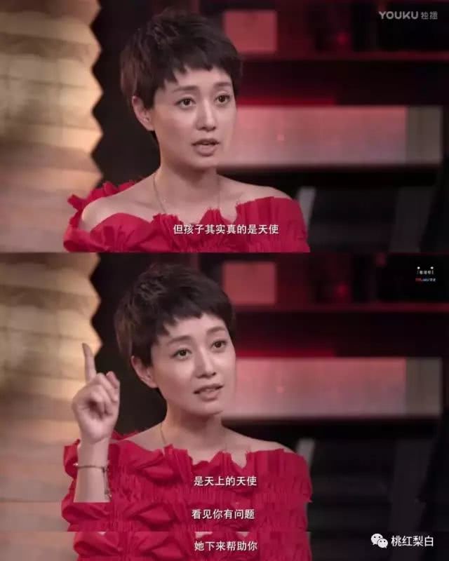这一点,她自己也在节目中讲到:自己以前是蛮刻薄的。变化发生在有了孩子之后,还说孩子是帮助自己的天使。