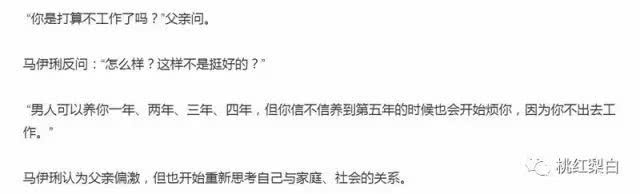 马伊琍提供了另一种可能性:这种搭配,也是过得下去的。自己有一些朋友,虽然是全职太太,但是对艺术品之类的东西非常精通,丈夫又刚好精于此道,所以俩人是完全聊得来、思想也同步的。这样的太太,还会让丈夫迫不及待想离开吗?