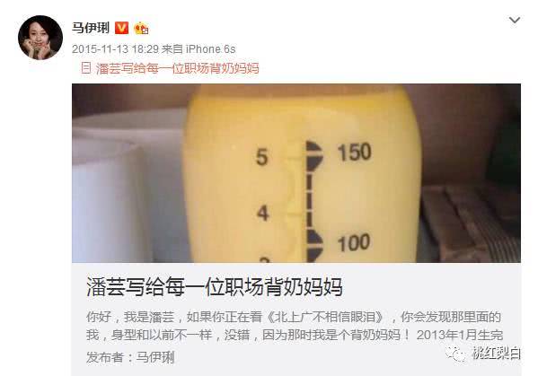 除了发图,还发过长文《潘芸写给每一位职场背奶妈妈》,分享自己作为二胎妈妈的体验:飞机上挤奶、在美国每6小时挤一次奶、因为哺乳需要没法穿紧身一些的漂亮衣服……