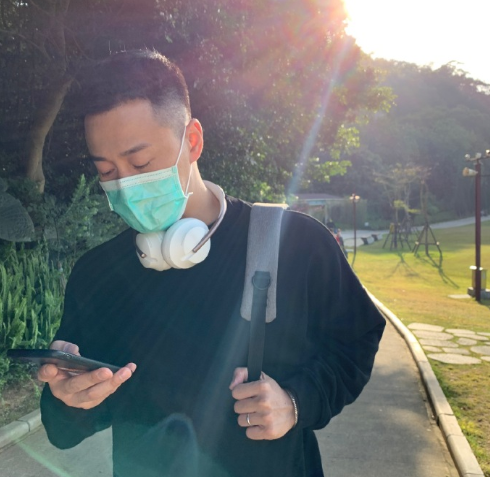 随后前往草地野餐,脖子上多了耳机,走在路上也手机刷不停。