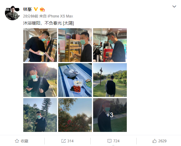 4月17日,林峯在社交平台分享一组外出近照,外出野餐悠闲惬