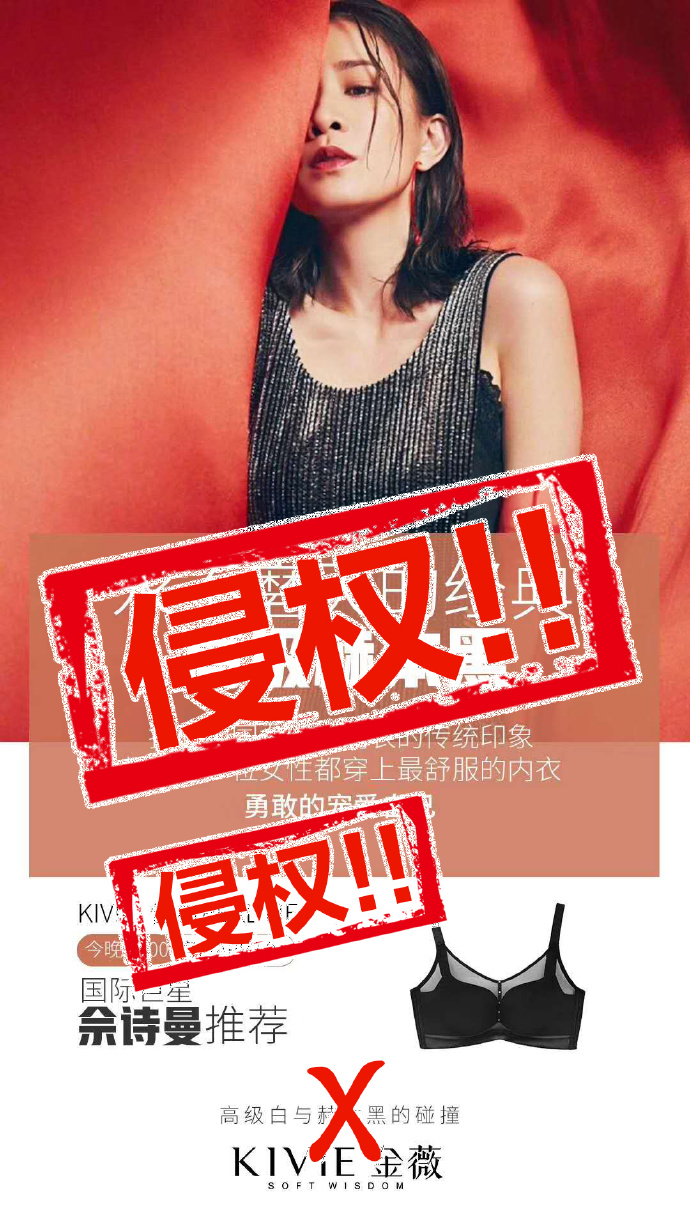1、我方艺人佘诗曼女士从未授权或正在合作以及曾经合作过此轻奢内衣品牌使用其肖像权,网络所传信息及相关侵权图片皆为恶意捏造、造谣的不实信息。本工作室强烈谴责相关网络用户的恶意造谣及传播行为,严禁一切恶俗的炒作行为。