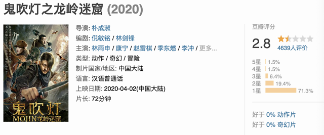 当然了,这部网大版《鬼吹灯之龙岭迷窟》吧,分这么低,也是因为故意蹭网剧的热度,结果被反噬了