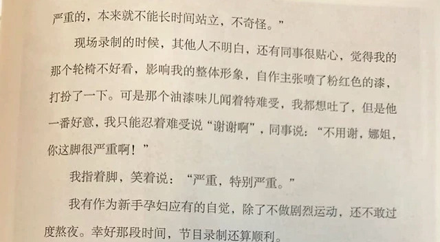 同事的一番好意令谢娜无法拒绝,但坐在轮椅上录节目时,那股强烈的油漆味令她差点想吐。