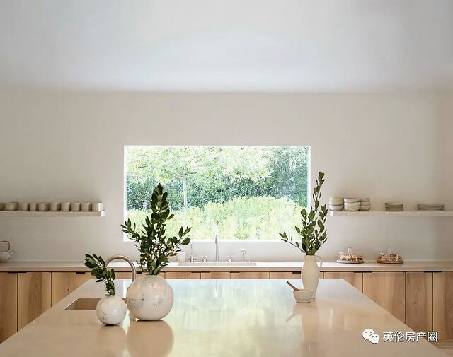 整个房产以白色为主调,并以其他浅色为陪衬,家具也极尽简约。