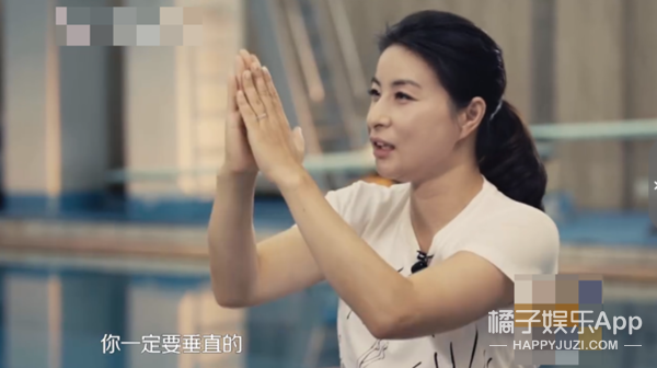 “入水一定要垂直,要练得好像一根针似的掉下去,所以手一定要直,手臂要搁在两个耳朵旁边夹着它,眼睛要直视着手,身体一定要很有力很紧。”